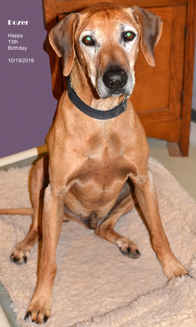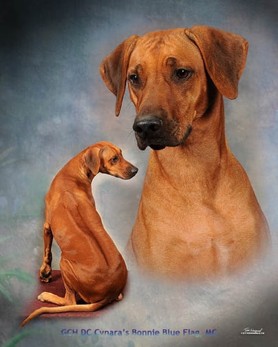 Cynara's primary goal is to breed physically and mentally healthy Rhodesian Ridgebacks to exceed the average lifespan of 10 years. Many health problems and diseases have a genetic link so Cynara looks for healthy sires who lived a long life. Using frozen semen is a great way to do this. Dozer (in the photo) lived to be over 13. Dozer is the sire of our J litter.
